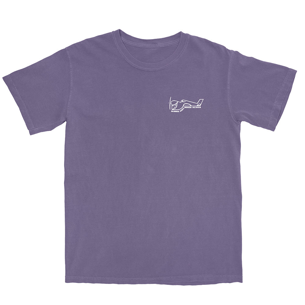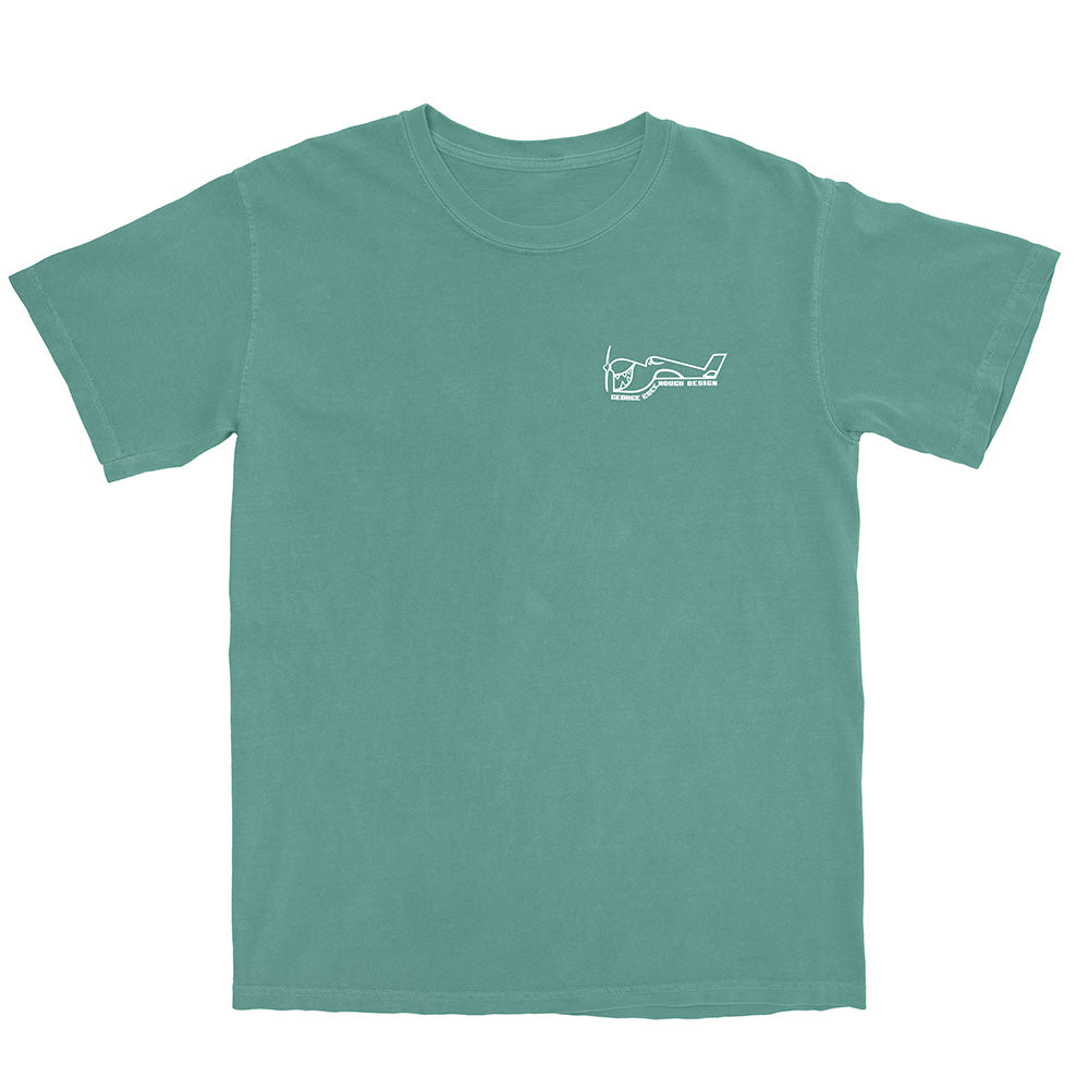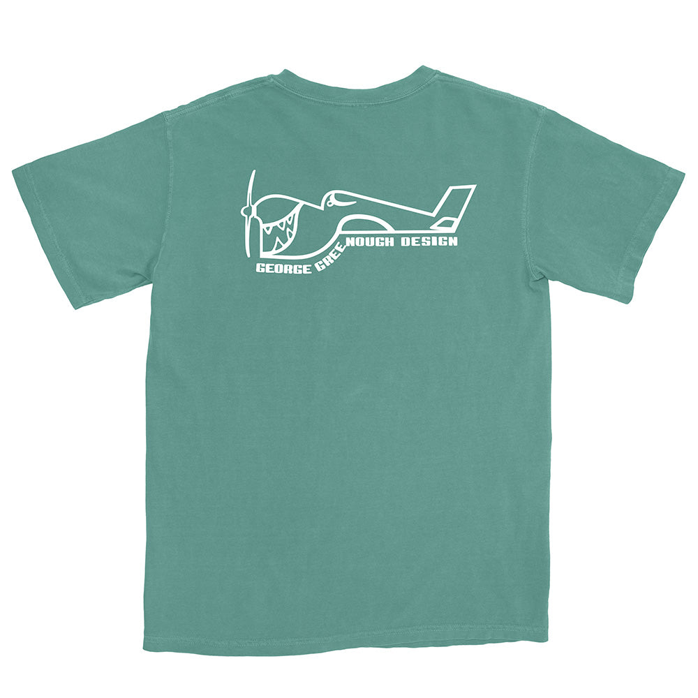 Few have had more of an impact on surfing and wave-riding performance capability than George Greenough, whose revolutionary fin designs are reminiscent of the wings of an airplane–they produce heaps of power and lift with minimal drag. This tee features Greenough’s iconic airplane logo in both a large back print and a small front print on the left chest.