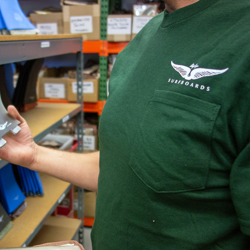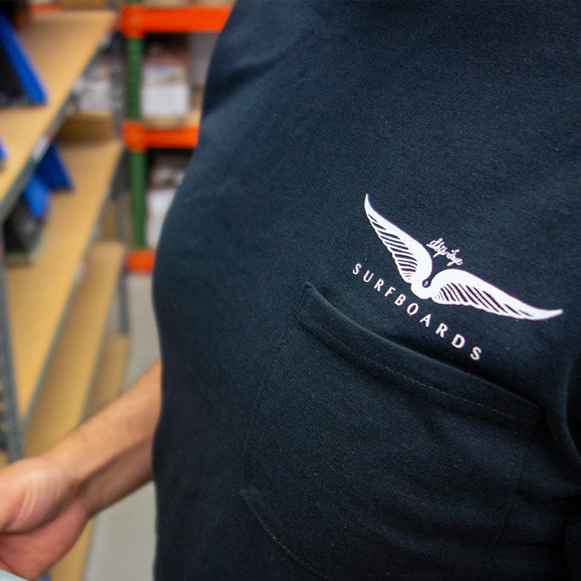 This pocket tee features Skip Frye’s classic logo in both a large back print and a small front print on the left chest, above the pocket. Sport this t-shirt as a tribute to one of the greatest surfboard craftsmen of all time.