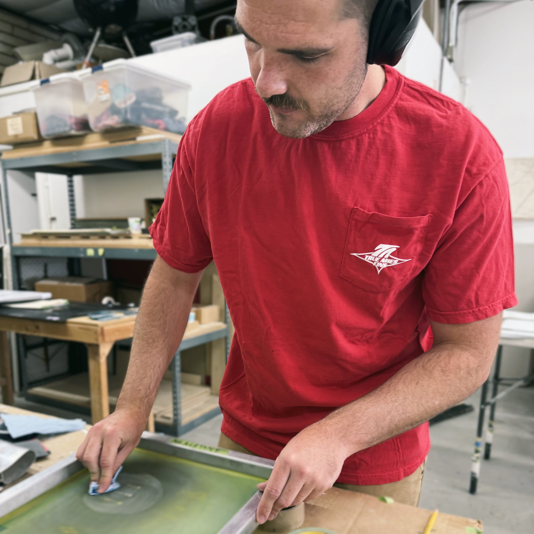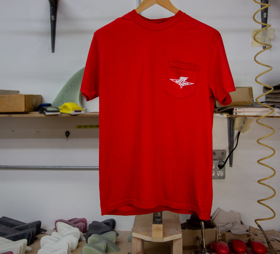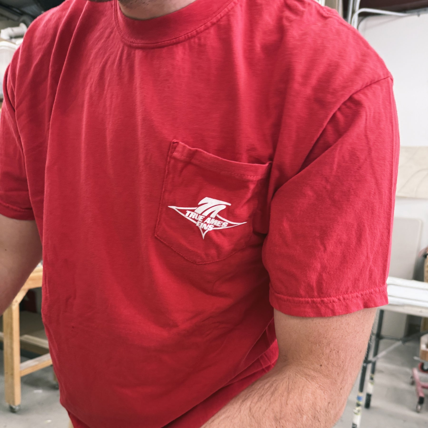 Celebrate four decades of True Ames’ fins with this pocket tee. A classic, heritage, shop pocket tee with a simple pocket hit of our tried and true True Ames Diamond Logo. The perfect hue of red for your closet collection of tees.