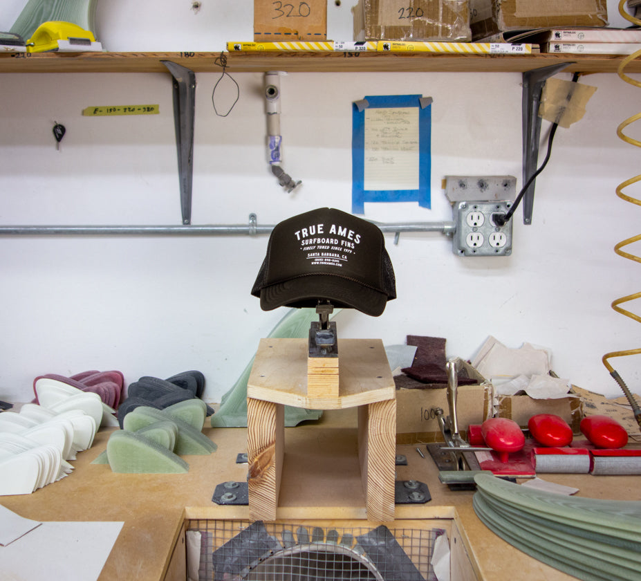 This foam trucker hat features the timeless True Ames shop logo on the front.